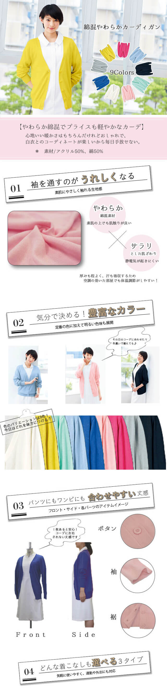 綿混やわらかカーディガン レギュラー丈 カーディガン 看護師 ナース の通販ならアンファミエ